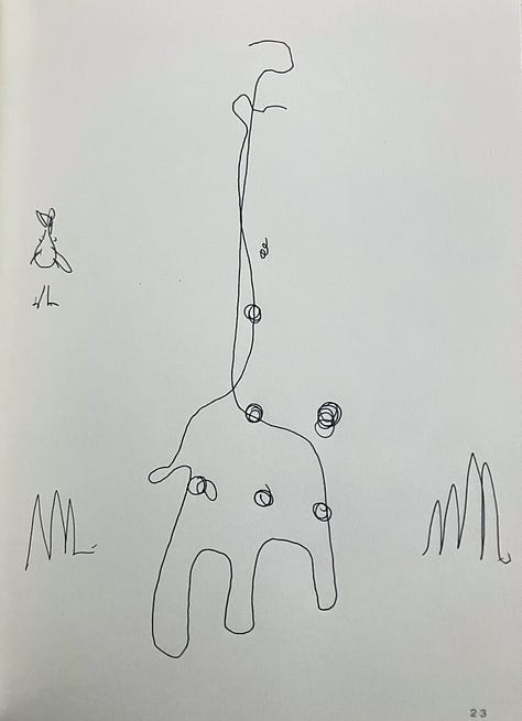 With the page of colorful circles above, I used the lined paper simply because it was the next page in the book. I like it even more than if the paper had been blank.